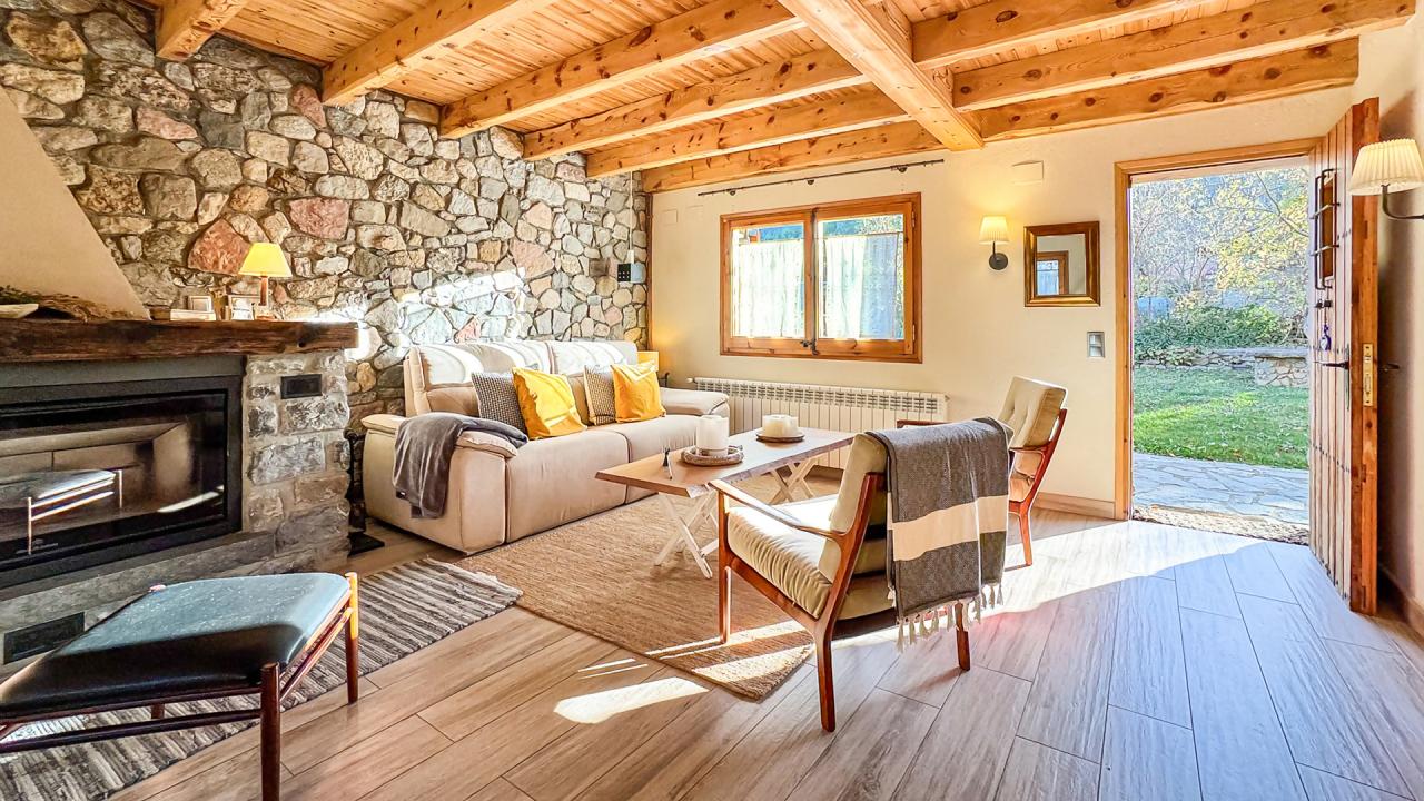 ¿Qué hay dentro? Te lo resumo, rápido: - 4 habitaciones dobles: Todas con camas de matrimonio y espacio para que duermas como se debe. Ideal para 8 personas, sin apretujarse. - 2 baños completos: Porque nadie quiere hacer cola en vacaciones. Hay uno en cada planta, listo para todos. - Salón y sala de cine: Sí, una sala de cine en la buhardilla, con TV y sofá para esas noches que quieras desconectar de todo. Abajo, un salón-comedor con chimenea d...