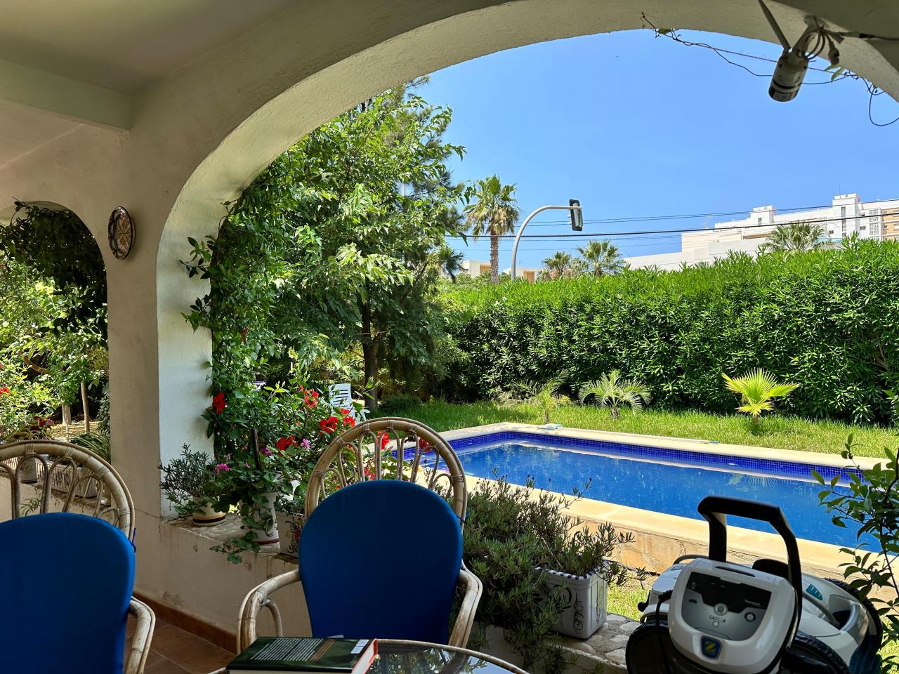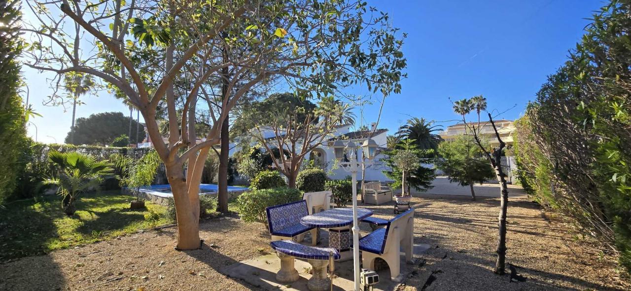 Bonito chalet independiente a tan sólo 200 metros de la playa. Tiene una parcela con jardin, árboles, barbacoa, piscina privada y zona de aparcamiento. La vivienda cuenta con 3 dormitorios dobles, 2 baños completos, 1 cocina independiente, 1 salón-comedor y una gran terraza cubierta con vistas a la piscina. situado a 4 km del centro de Denia, rodeado de todos los servicios, restaurantes, supermercados, chiringuitos....